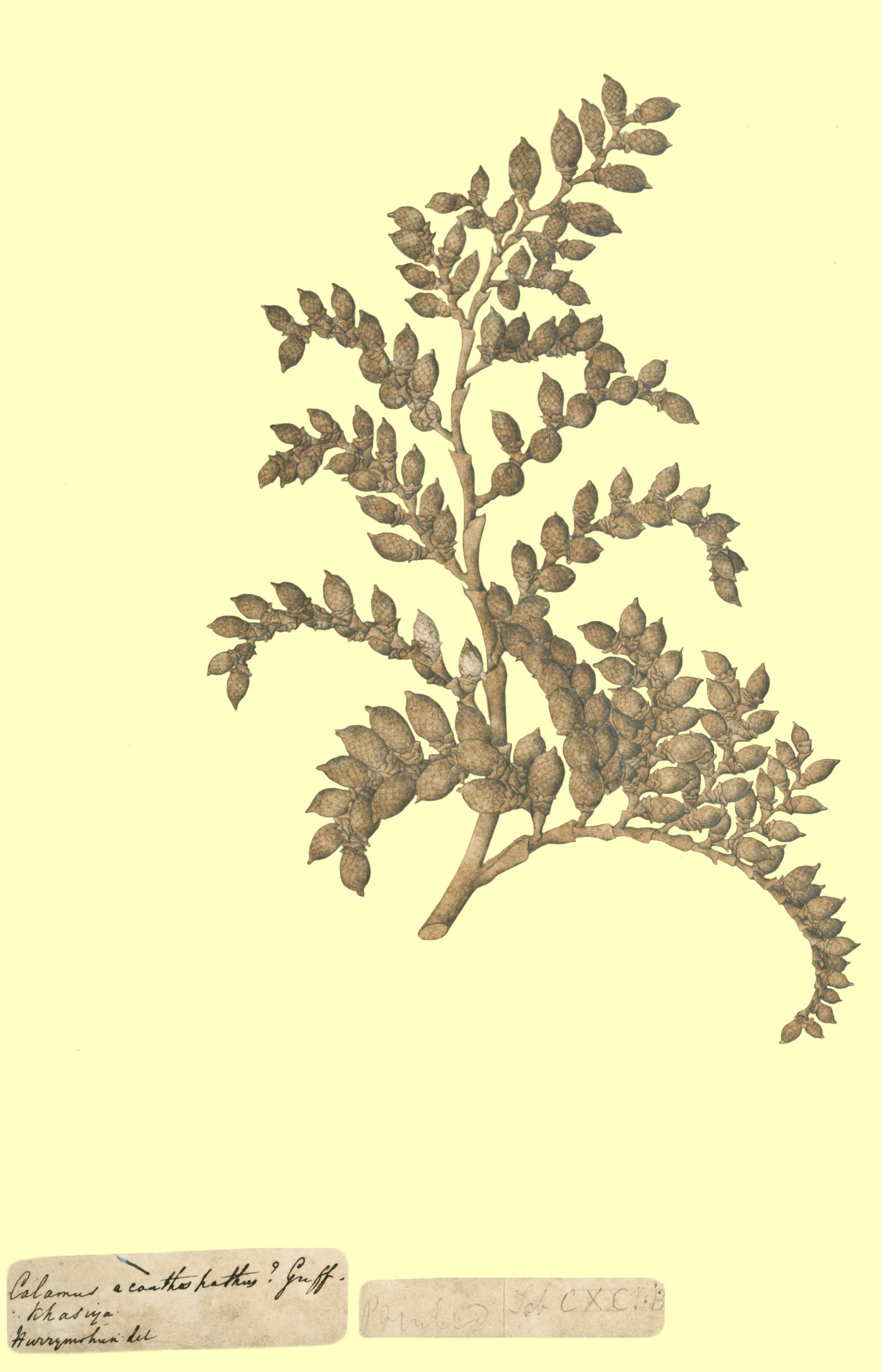 Move your mouse over image to enlarge. Category: Other Paintings Volume/Folder Number: 39 Name of the plant: Calamus acanthospathus Griff. Name of the Family: ARECACEAE