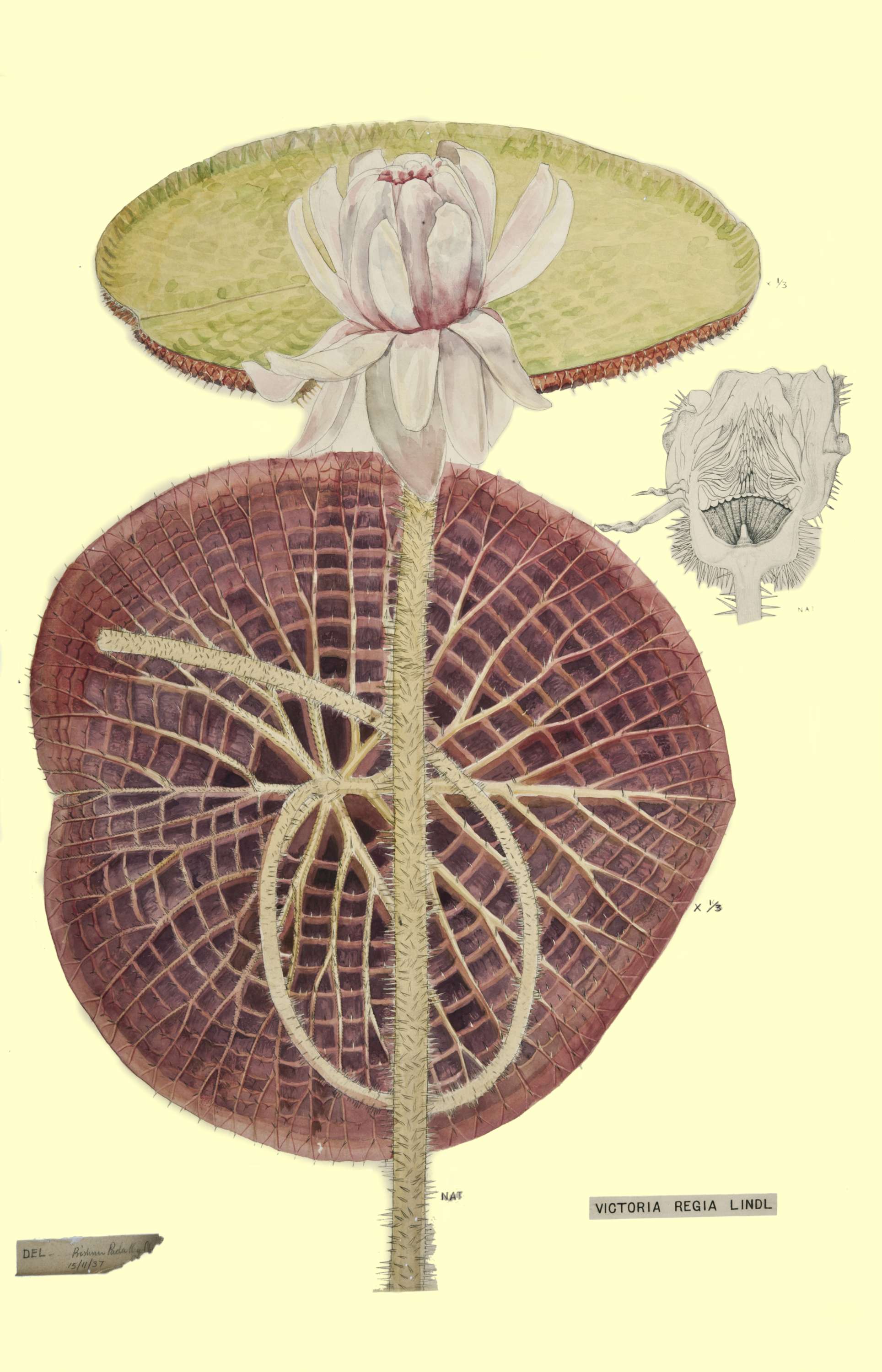 Move your mouse over image to enlarge. Category: Other Paintings Volume/Folder Number: 13 Name of the plant: Victoria regia Lindl. Name of the Family: NYMPHAEACEAE