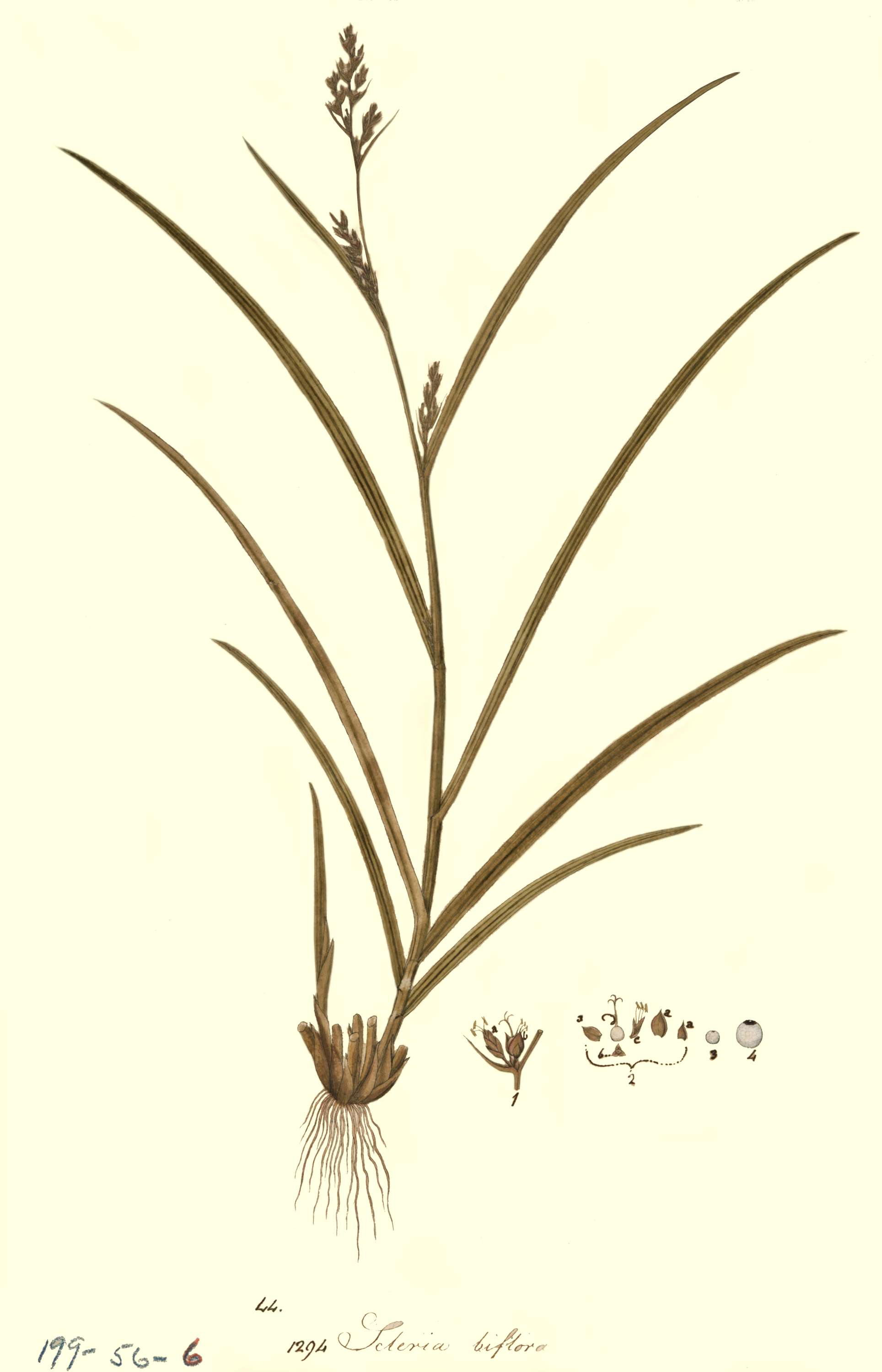 Move your mouse over image to enlarge. Category: Roxburghs Icon Volume/Folder Number: 31 Roxburghs Icon No.: 1294 Name of the plant: Scleria biflora Roxb. Name of the Family: CYPERACEAE