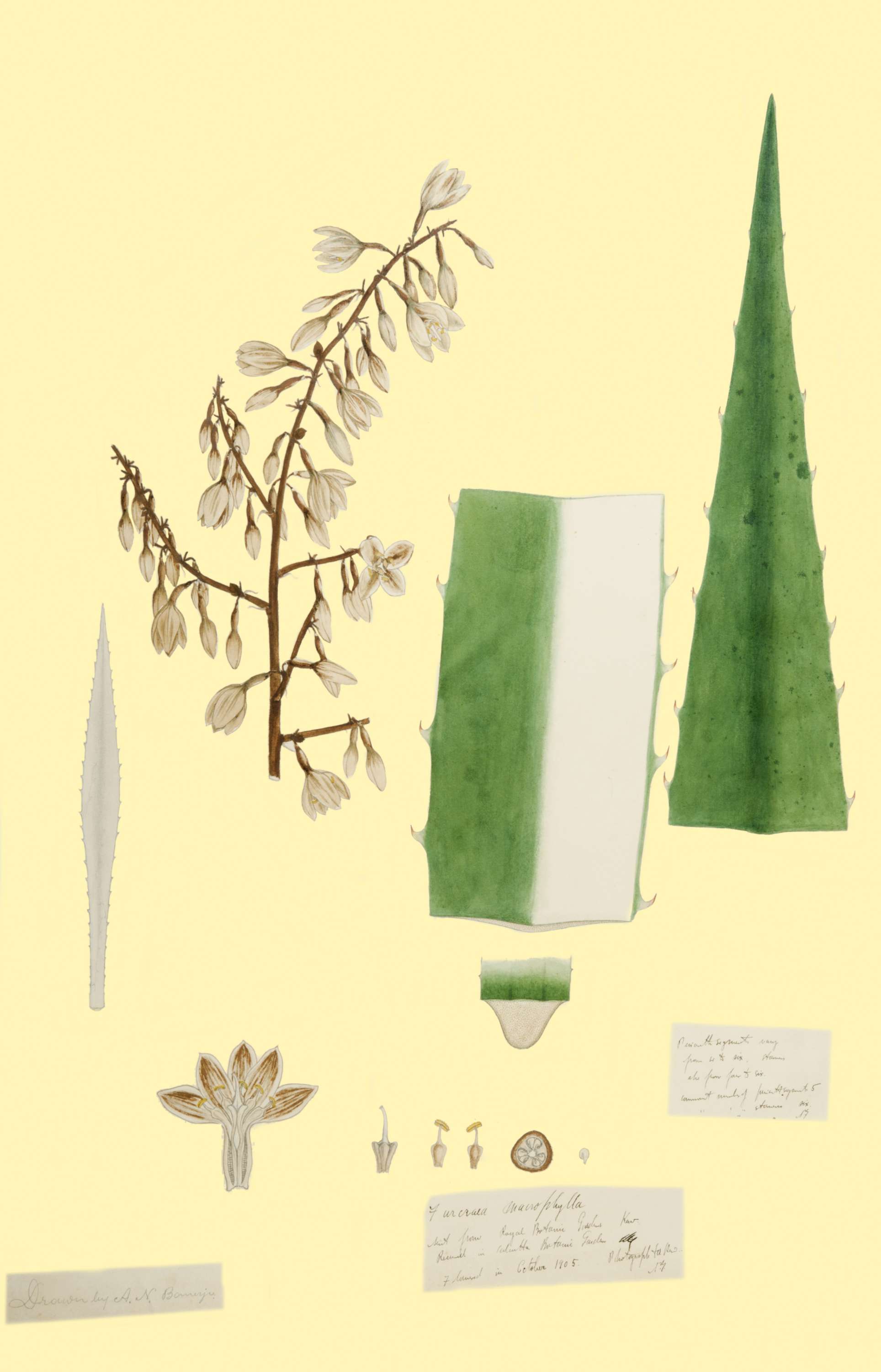 Move your mouse over image to enlarge. Category: Other Paintings Volume/Folder Number: 24 Name of the plant: Furcraea macrophylla Baker Name of the Family: AGAVACEAE