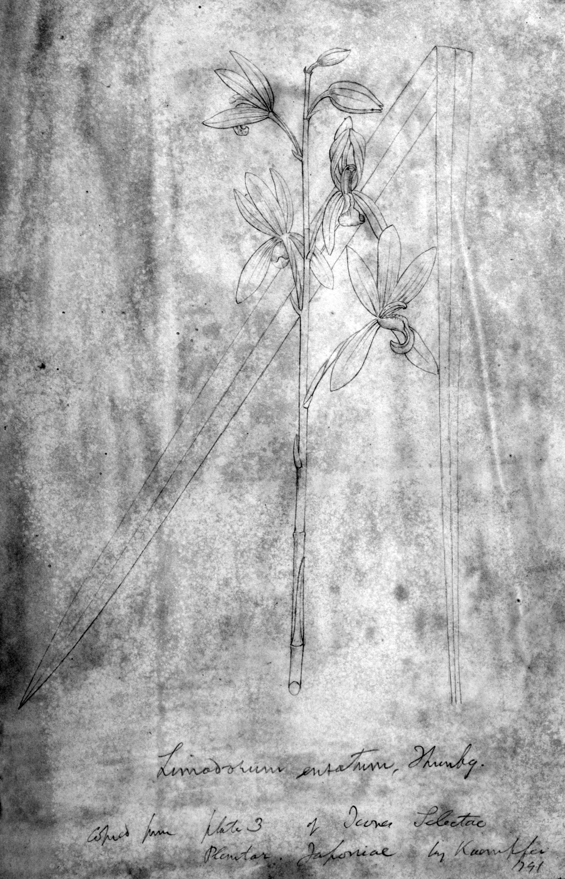 Move your mouse over image to enlarge. Category: Other Paintings Volume/Folder Number: 30 Name of the plant: Limodorum ensatum Thunb. Name of the Family: ORCHIDACEAE
