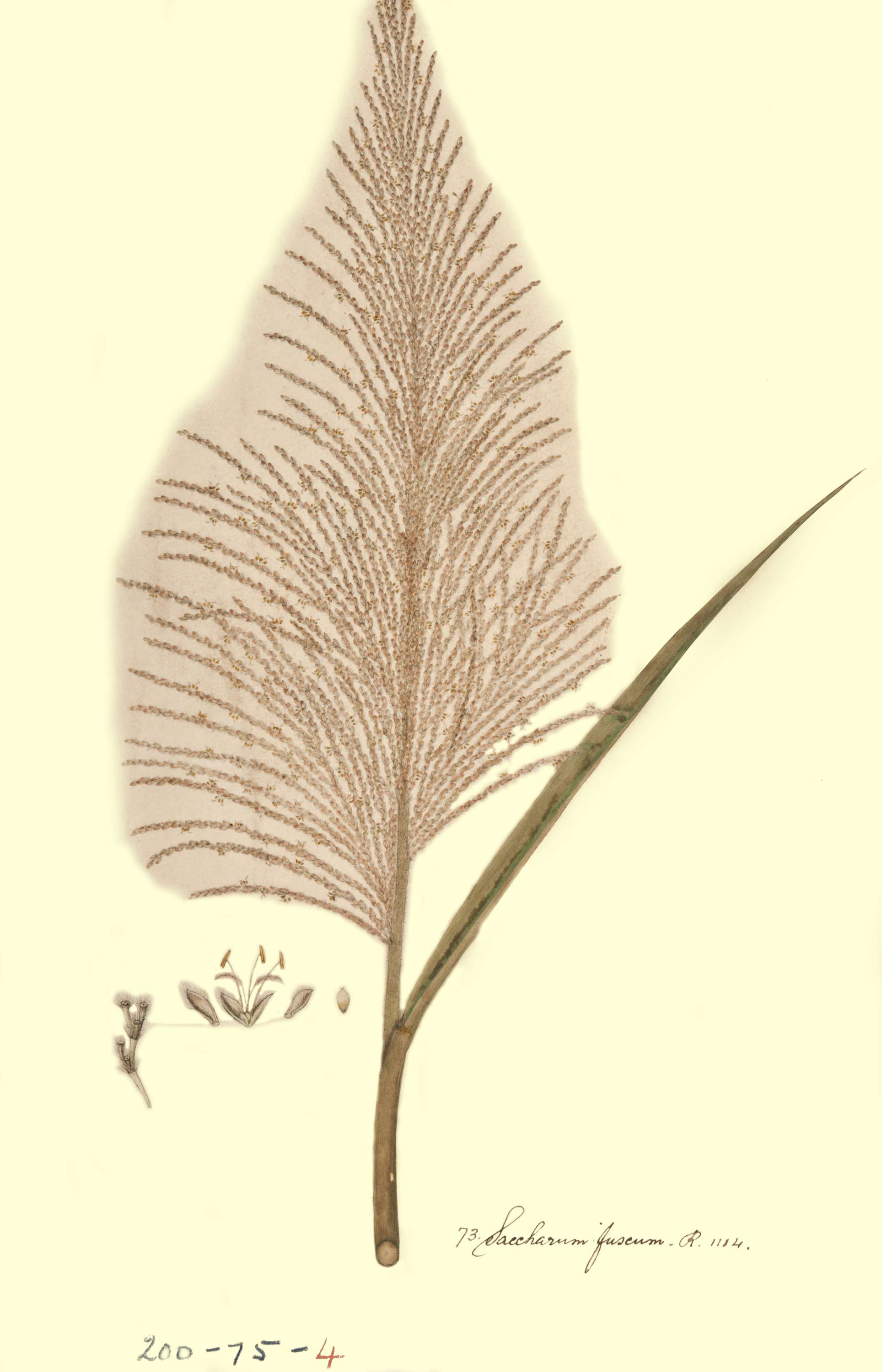 Move your mouse over image to enlarge. Category: Roxburghs Icon Volume/Folder Number: 33 Roxburghs Icon No.: 1114 Name of the plant: Saccharum fuscum Roxb. Name of the Family: POACEAE